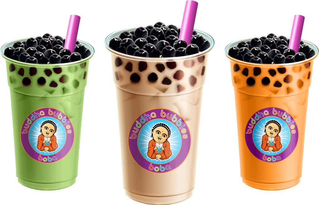 What is Boba? Boba Tea, also known as Boba or Bubble Tea is a Taiwanese, tea based drink which often contains tapioca, known as Boba, or Tapioca Pearls at the bottom of the cup. These Boba are sucked up through an extra-large straw and are chewy, kind of like a gummy bear. It is unclear exactly when or who invented Boba, but we do know where, Taichung Taiwan sometime in the 1980's. Most Boba / Bubble tea recipes contain a tea base mixed with fruit or milk. Some popular flavors are: Honeydew Melon, Taro and Matcha Green Tea Latte. The Boba is served most often cold, sometimes hot, and blended like a smoothie or shaken like a cocktail. There are hundreds of variants of the drink, the most popular Boba / Bubble Tea drink is milk tea with tapioca pearls. There are also variations of Boba, mostly with the color being or dark brown. The Boba has a very mild sweet taste. Some shops also add flavored gelatin, also called jellies, to the bottom of the cup. The newest type of Boba are called Boba Bombs or Popping Boba, a pearl sized beads filled with fruit flavored syrup, that pop when you bite them. Boba shops are popping up all over the world. One Boba drink will set you back about $6.00 on average. Quality will vary from shop to shop, but at Buddha Bubbles Boba, we pride ourselves on not only the highest quality, but also the most amazing taste. So...have a Boba today and smile.
